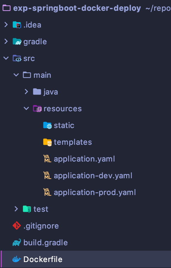 자! 그럼 Docker 컨테이너를 개발환경별로 배포하기 위해 프로젝트 최상위 디렉토리에 Dockerfile을 생성합시다.