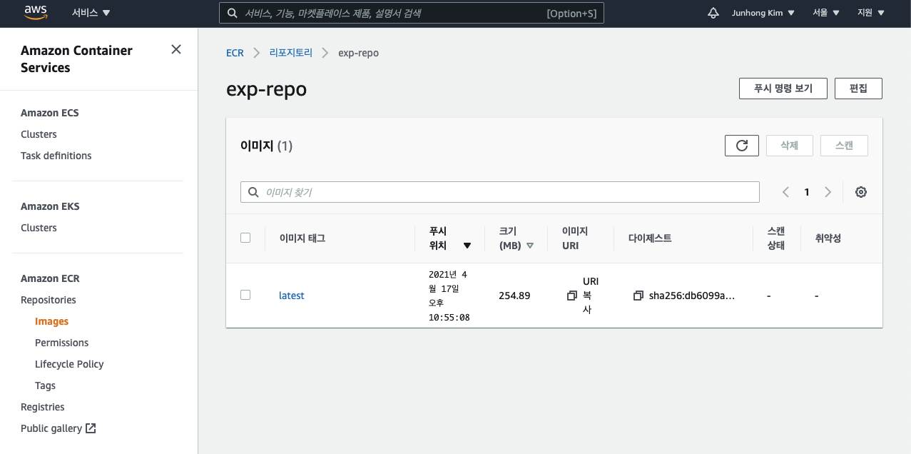 $ docker push 123456789.dkr.ecr.ap-northeast-2.amazonaws.com/exp-repo:latest