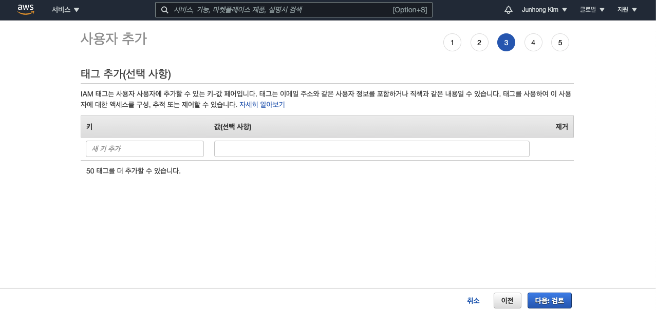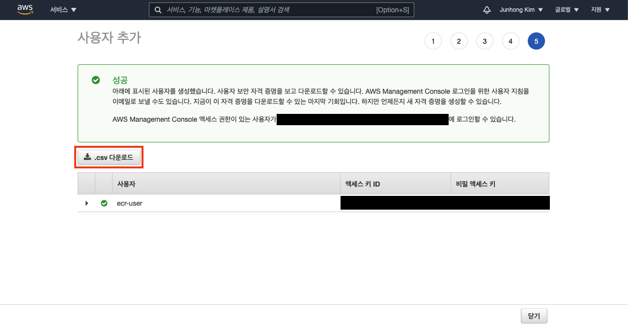 신규 IAM 사용자에 대한 최종 검토를 합니다.