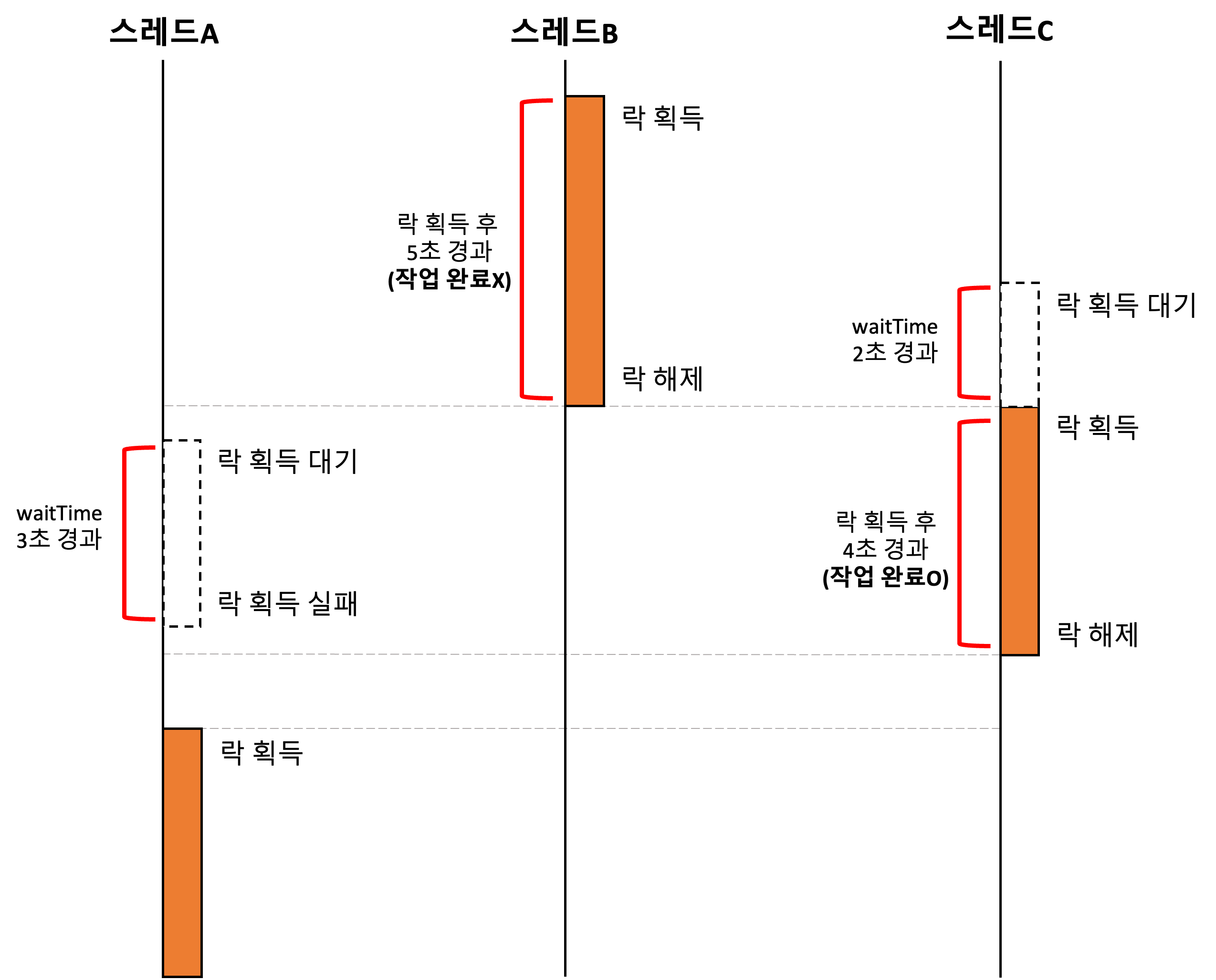 - 다수의 프로세스가 동시에 락을 획득하려고 할 때, 하나의 프로세스가 이미 락을 보유하고 있을 경우 다른 프로세스는 waitTime 동안 대기합니다.